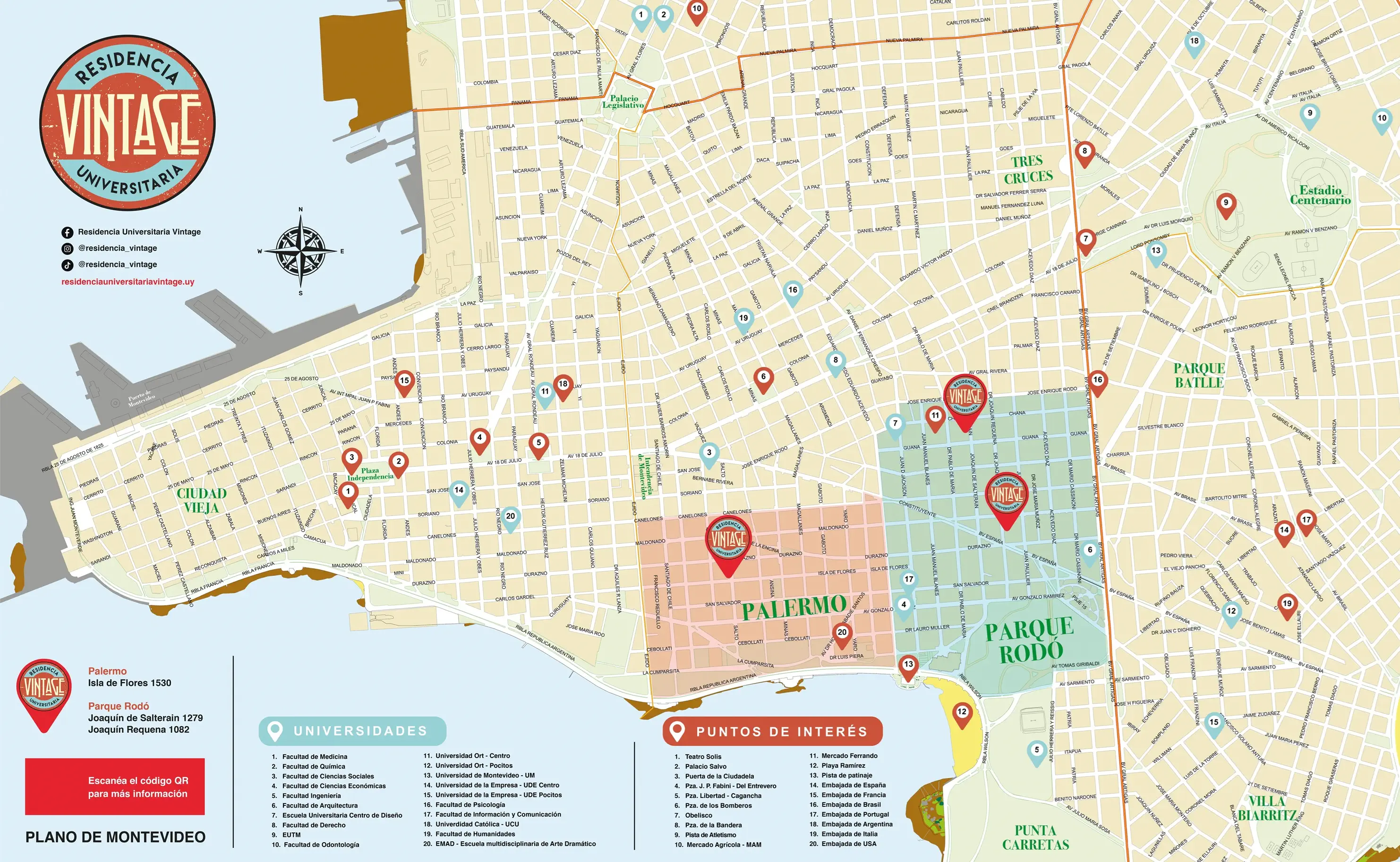 Ubicadas en zonas tranquilas y seguras de Montevideo, con excelente conectividad y cercanía a facultades.